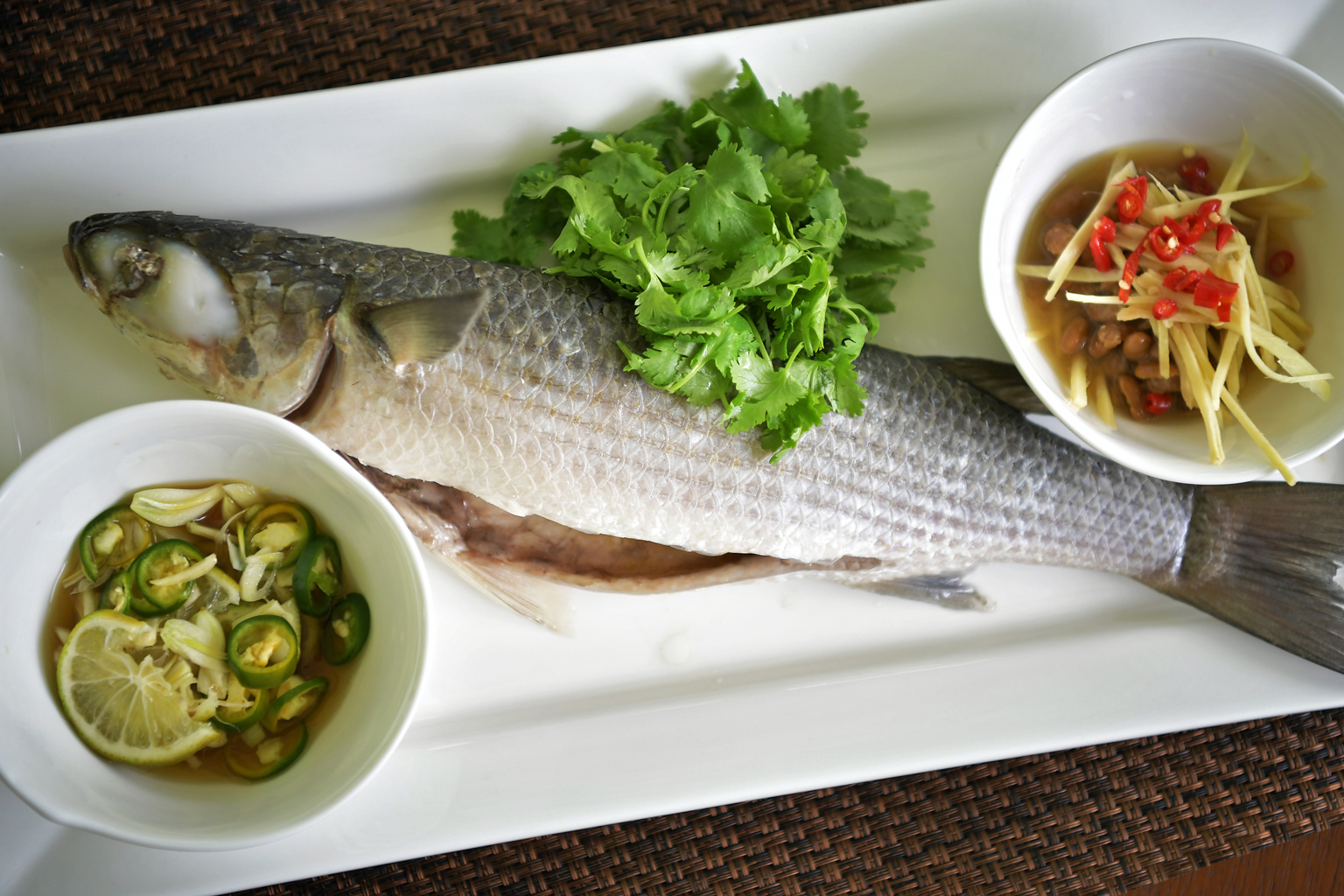STEAMED MULLET WITH TWO DIPS
