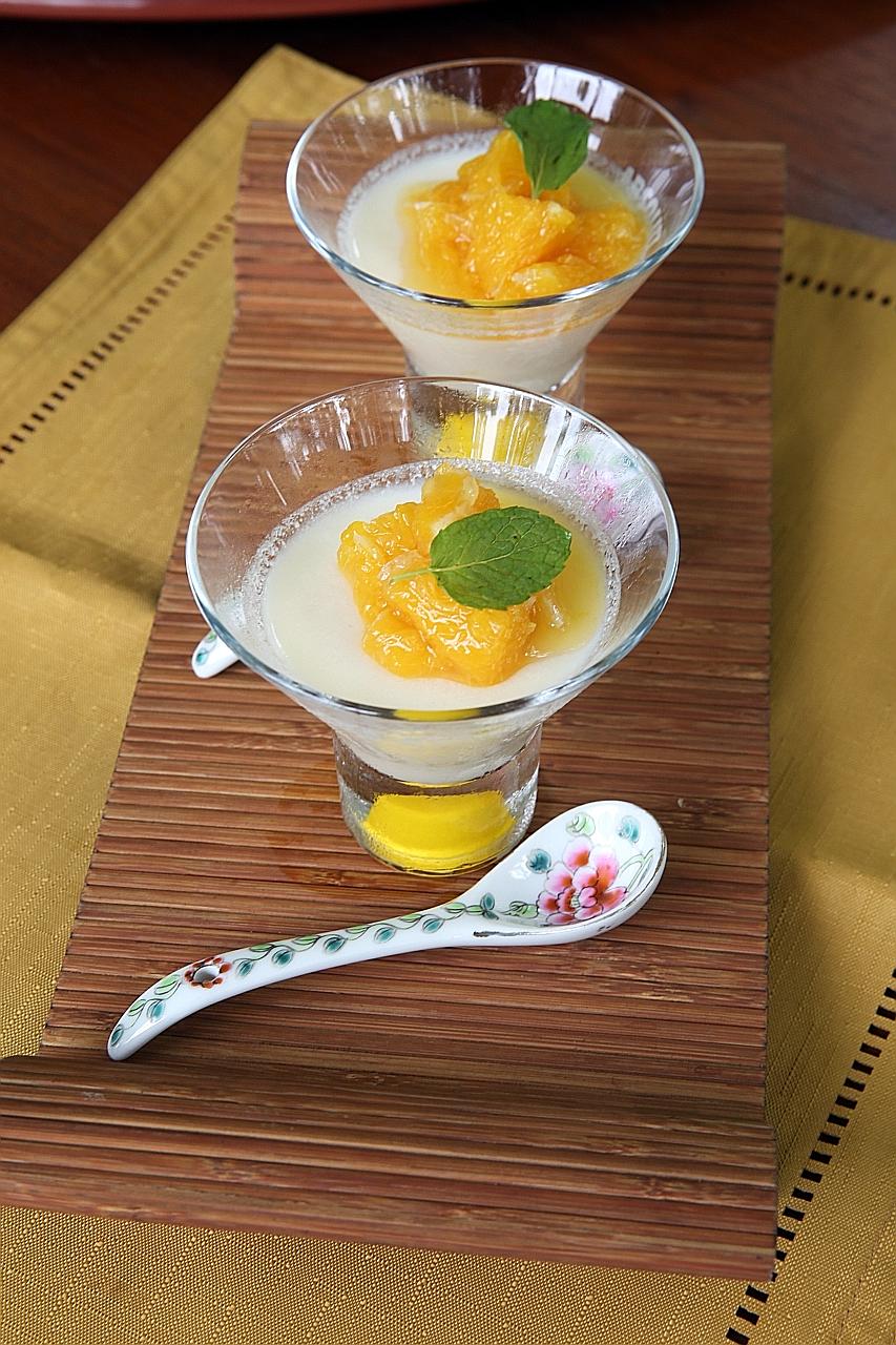 A panna cotta made with yogurt is merely a richer version of that local?dessert, tau huay, which is, of course, made with soya milk.