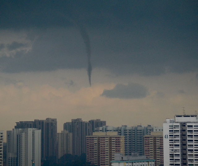 "A strong gust of wind together with a waterspout came through NSC and left a trail of damages this afternoon," said the spokesman. "It was fortunate that sailors were recalled as per standard operating procedure and waited under shelter when the siren was sounded earlier."