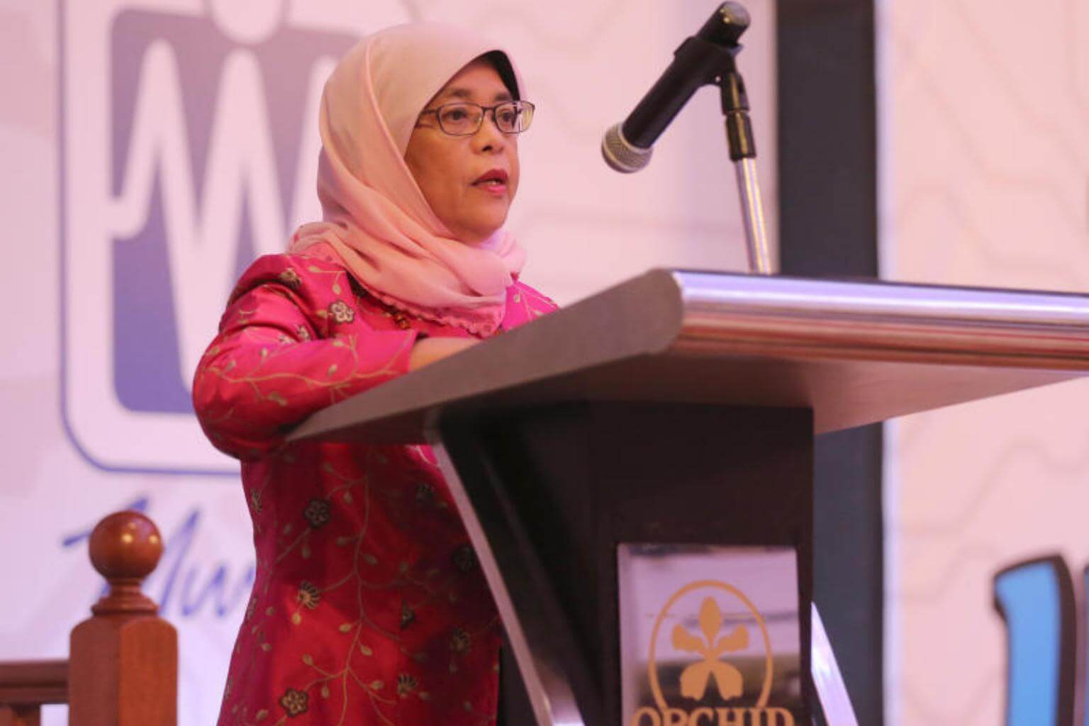 Halimah Yacob give a speech at the dinner and dance of the United Workers of Electronics and Electrical Industries (UWEEI).