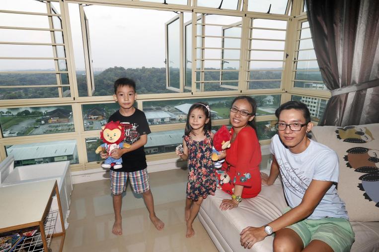 Mr Brian Chee, 41, his wife Catherine Low, 38, their daughter Heidi, five, and son Reygan, eight, live in a top-floor four-room flat in Punggol East. They are happy there and have no intention to sell despite attractive resale prices.