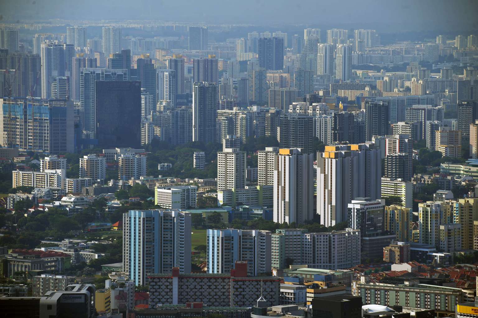An aerial view of HDB flats taken from 1-Altitude bar.