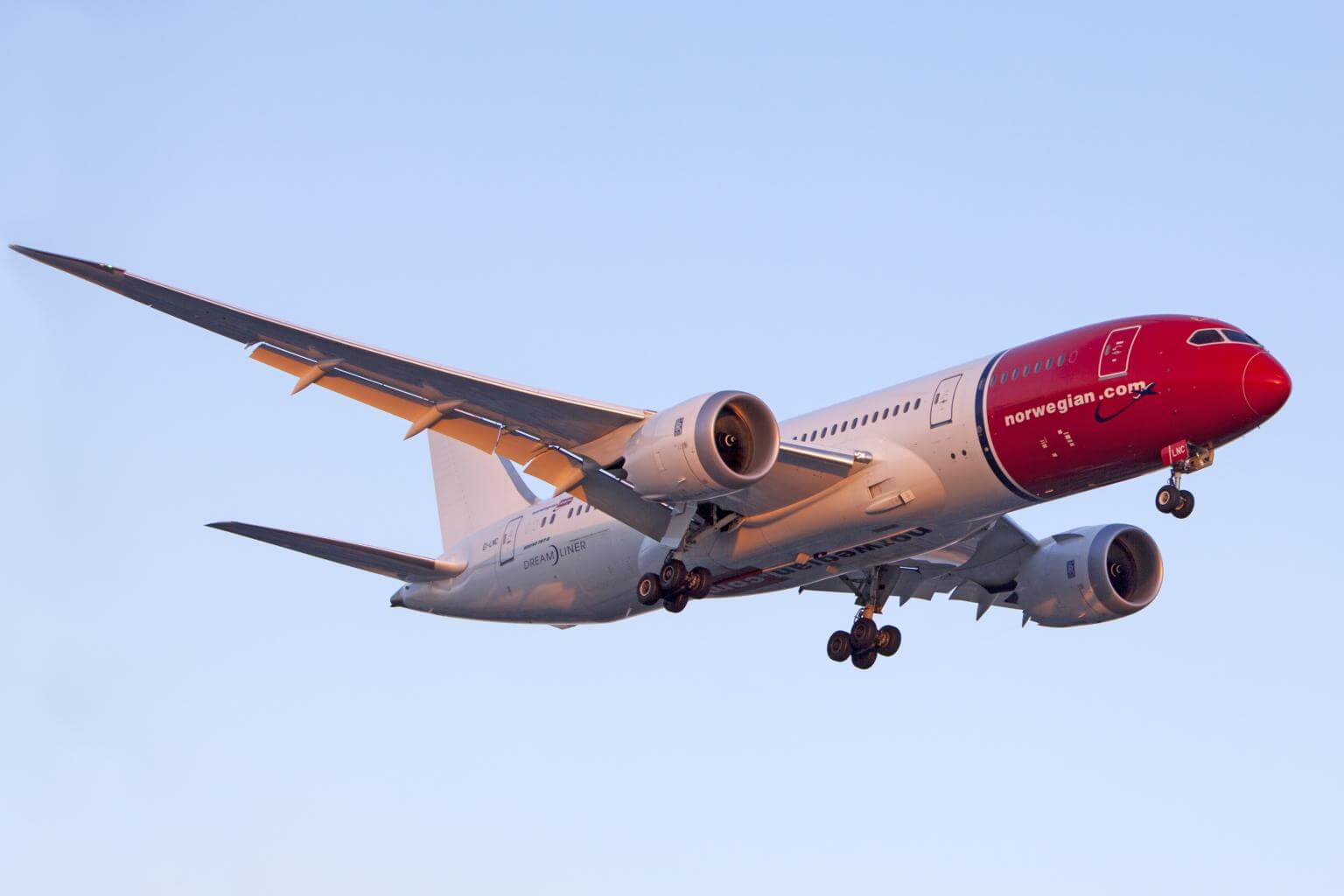 Norwegian Air Shuttle Boeing 787-8 Dreamliner lands at Los Angeles Airport (LAX) on May 24, 2015.