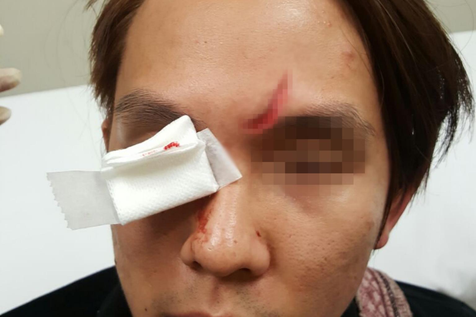 He said he took a taxi to Raffles Hospital and received 20 stitches for the wound on his forehead, which was "quite deep" and cost him more than $4,000 in medical bills.