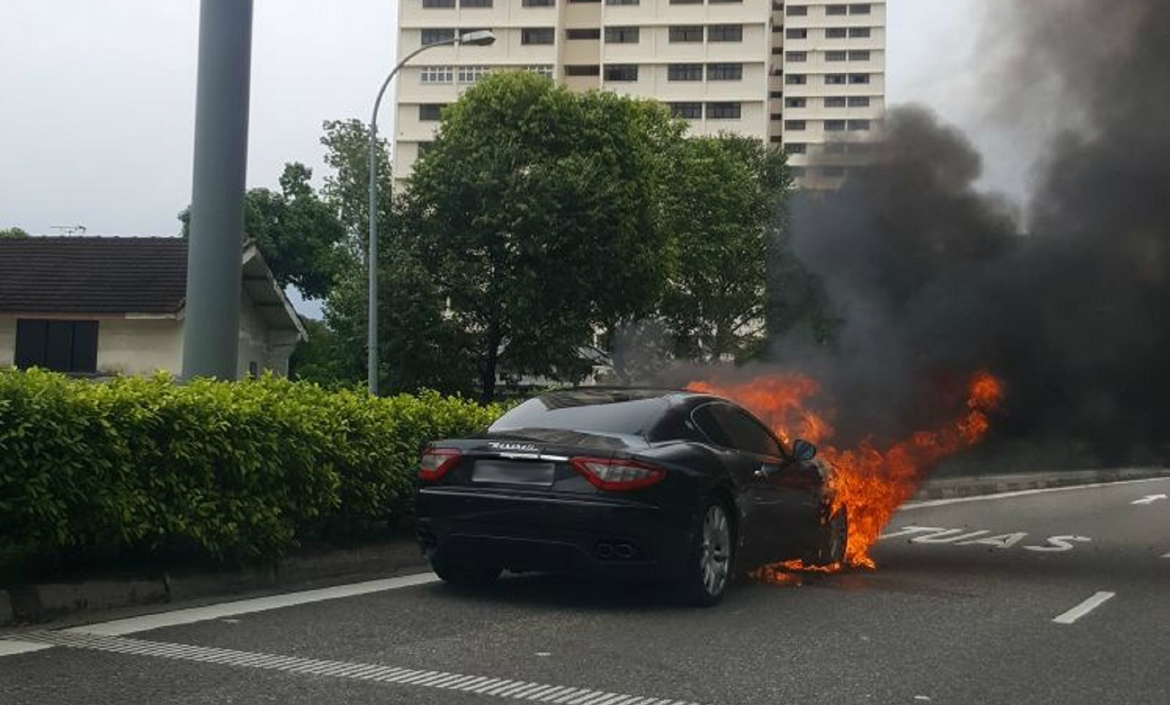 SINGAPORE - A Maserati on fire along the Kallang-Paya Lebar Expressway (KPE) on Monday (Nov 20) caused the Pan-Island Expressway (PIE) exit to be closed.