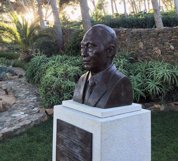 A bust of the late Mr Lee Kuan Yew in Catalonia's Cap Roig gardens.