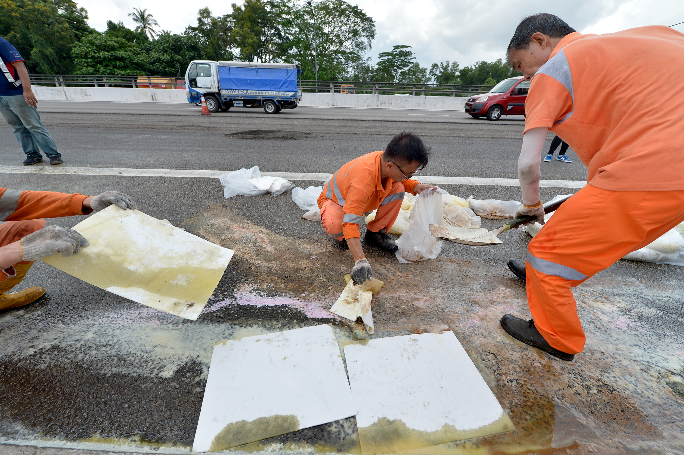 The Singapore Civil Defence Force (SCDF) and Land Transport Authority (LTA) gave The Straits Times the figures after a spate of three spills on the Bukit Timah Expressway (BKE), Pan-Island Expressway (PIE) and Kampong Bahru Road between Jan 29 and Feb 2.