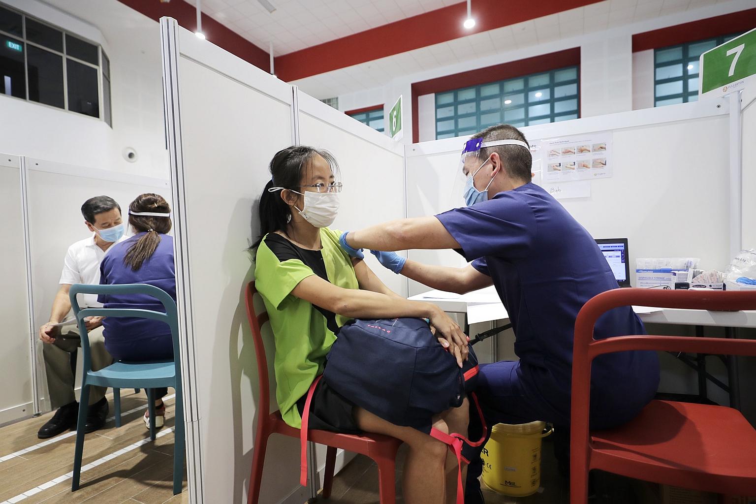 Members of the public getting vaccinated in Jalan Besar Community Club on Feb 19, 2021. Students aged 12 and above are next in line for Singapore's vaccination drive.
