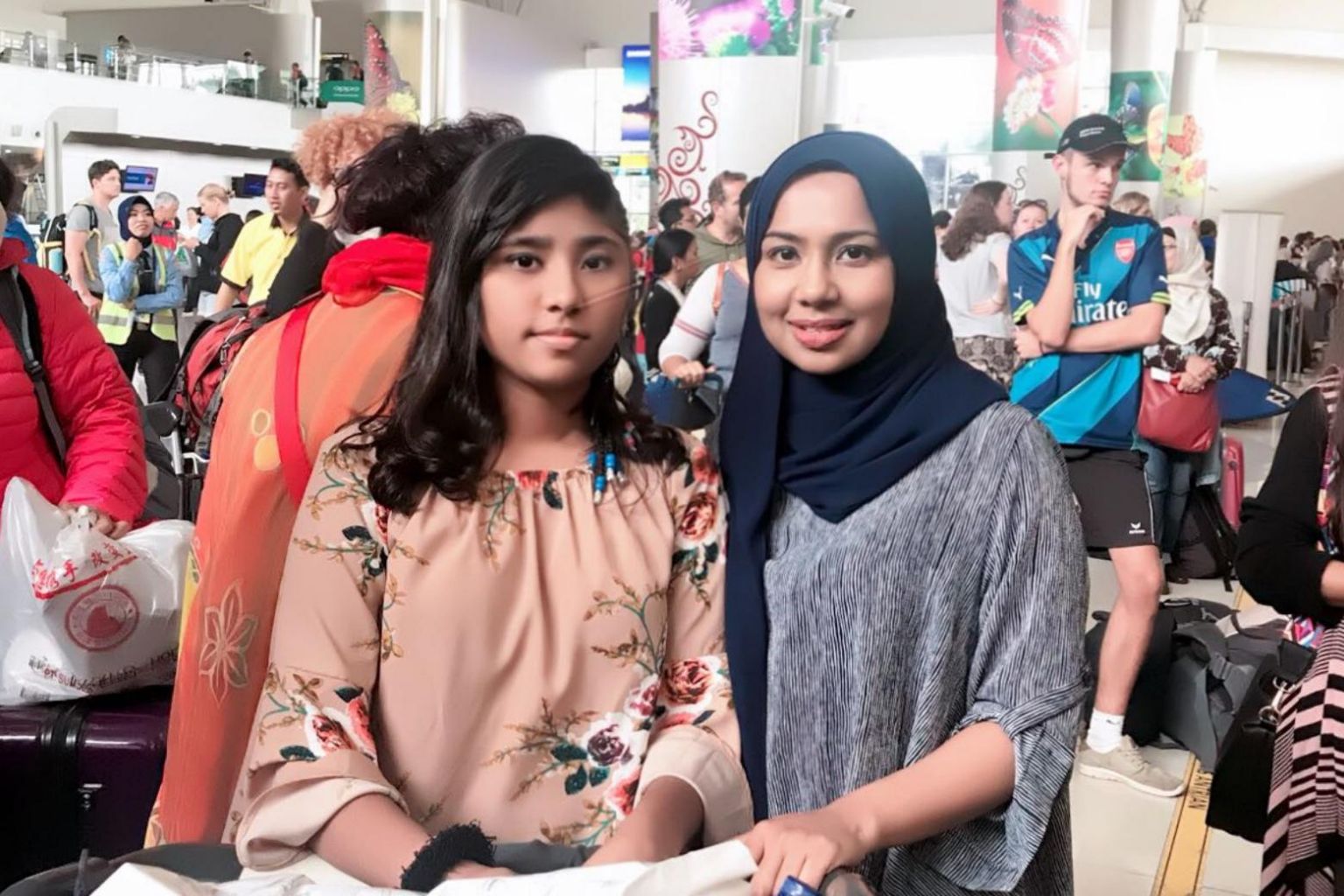 Ms Rukzana Hamid and her daughter Nur Humairah in Surabaya airport.