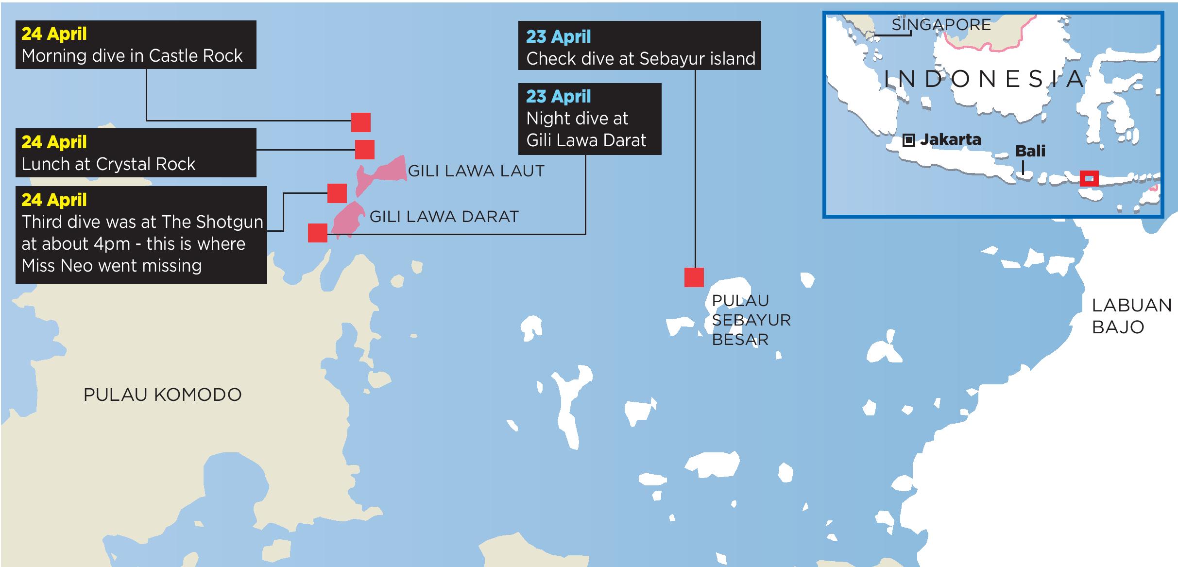 Local diving guide Putu Sudiartana, who led the group, and other divers searched for Miss Neo until 10pm but there was no sign of her.