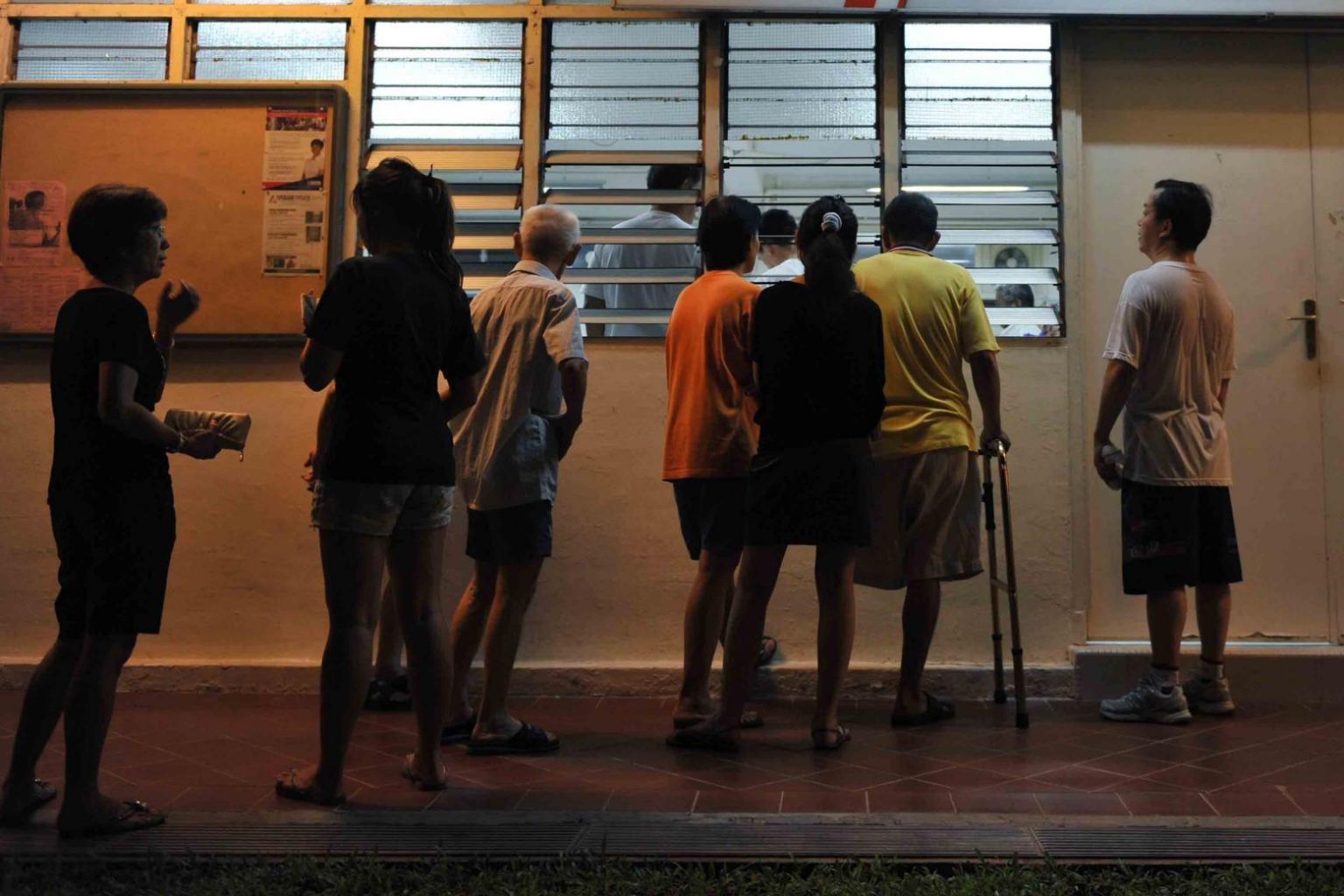 File photo showing people waiting outside a venue of a Meet-the-People Session in Tanjong Pagar.