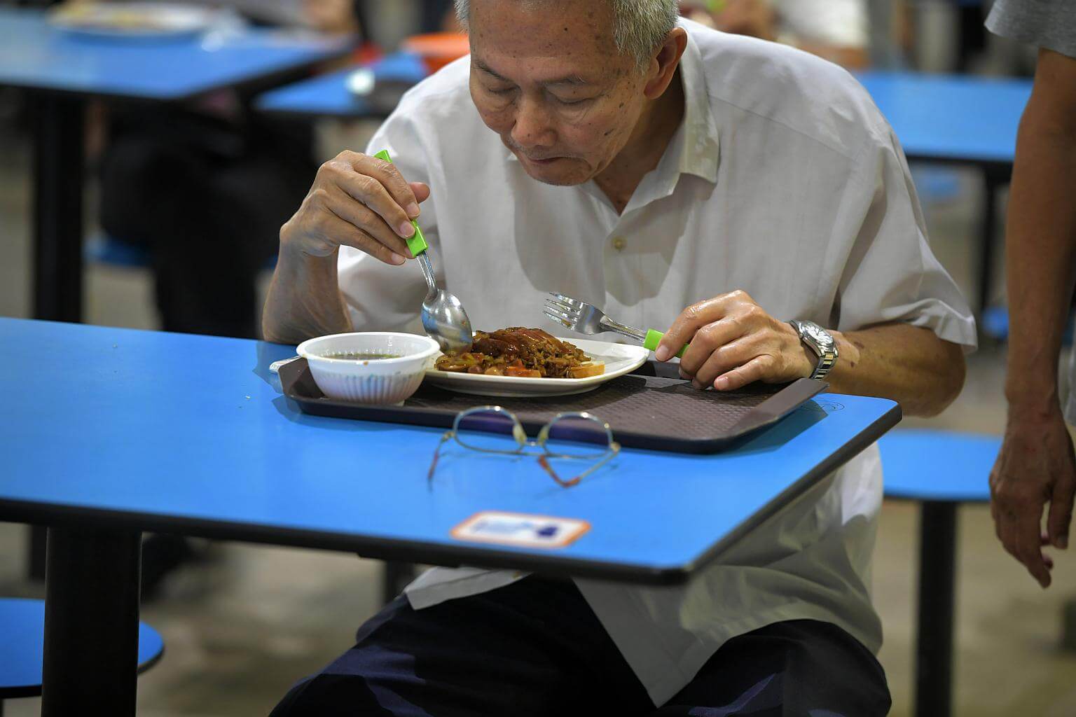 File photo of an elderly man having his meal at Bedok Interchange Hawker Centre.