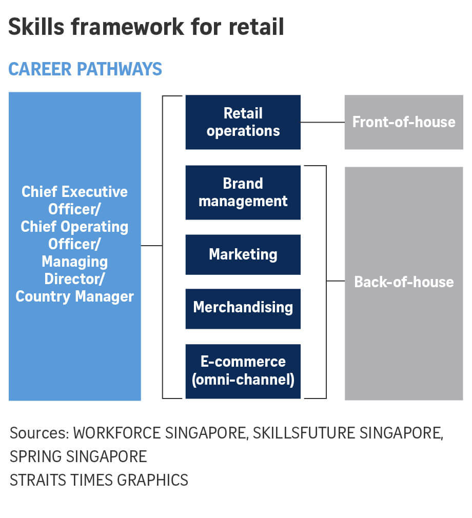 The guides are available on the SkillsFuture website, and map out seven tracks in the food services industry, such as food and beverage service, and five tracks in the retail sector. The latter includes brand management and e-commerce.