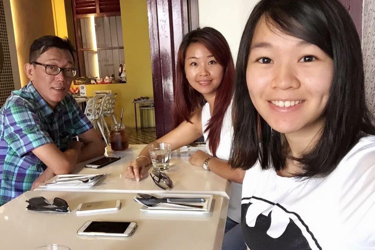 Ms Carmen Mark (right), with her mother Ariess Tan and father Mark Kok Wah.