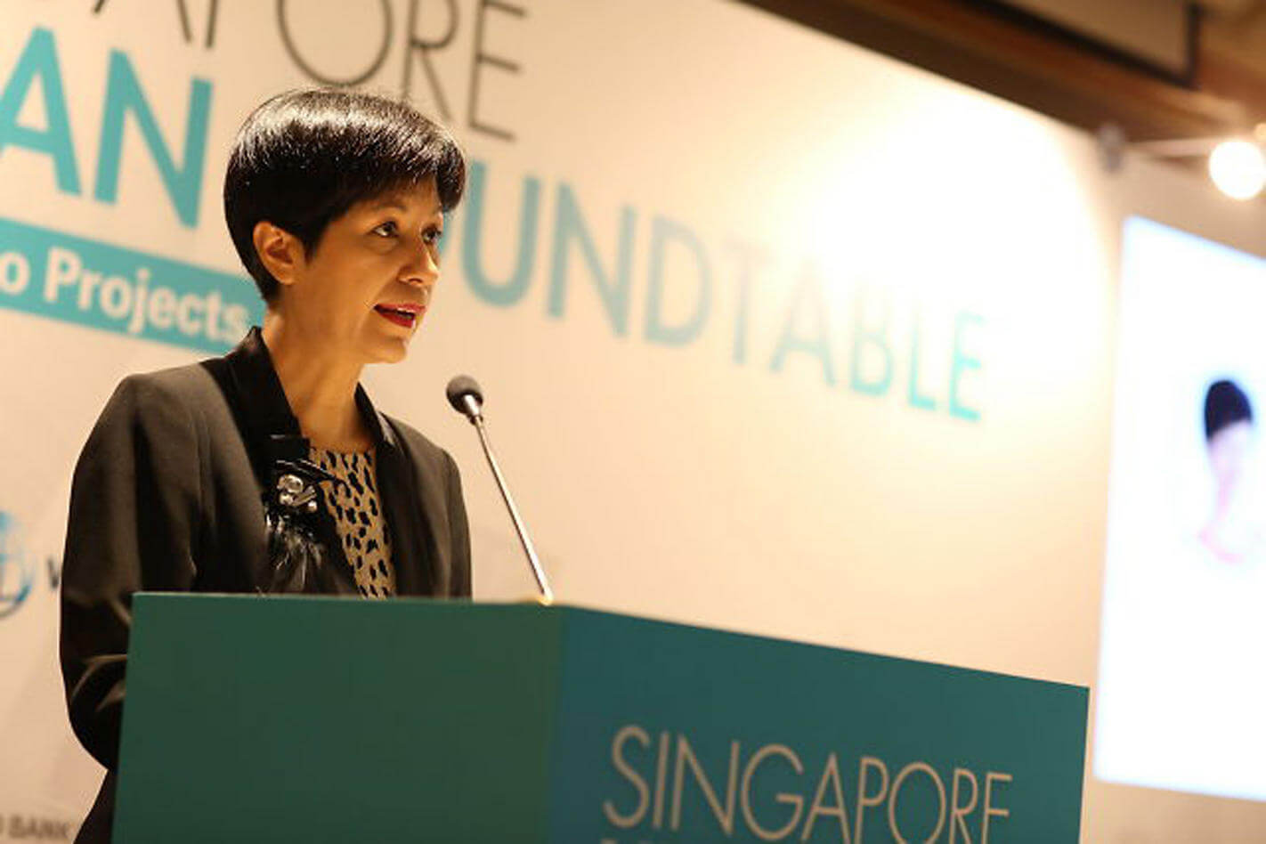 Senior Minister of State for Finance and Law Indranee Rajah speaking at an event on March 10.