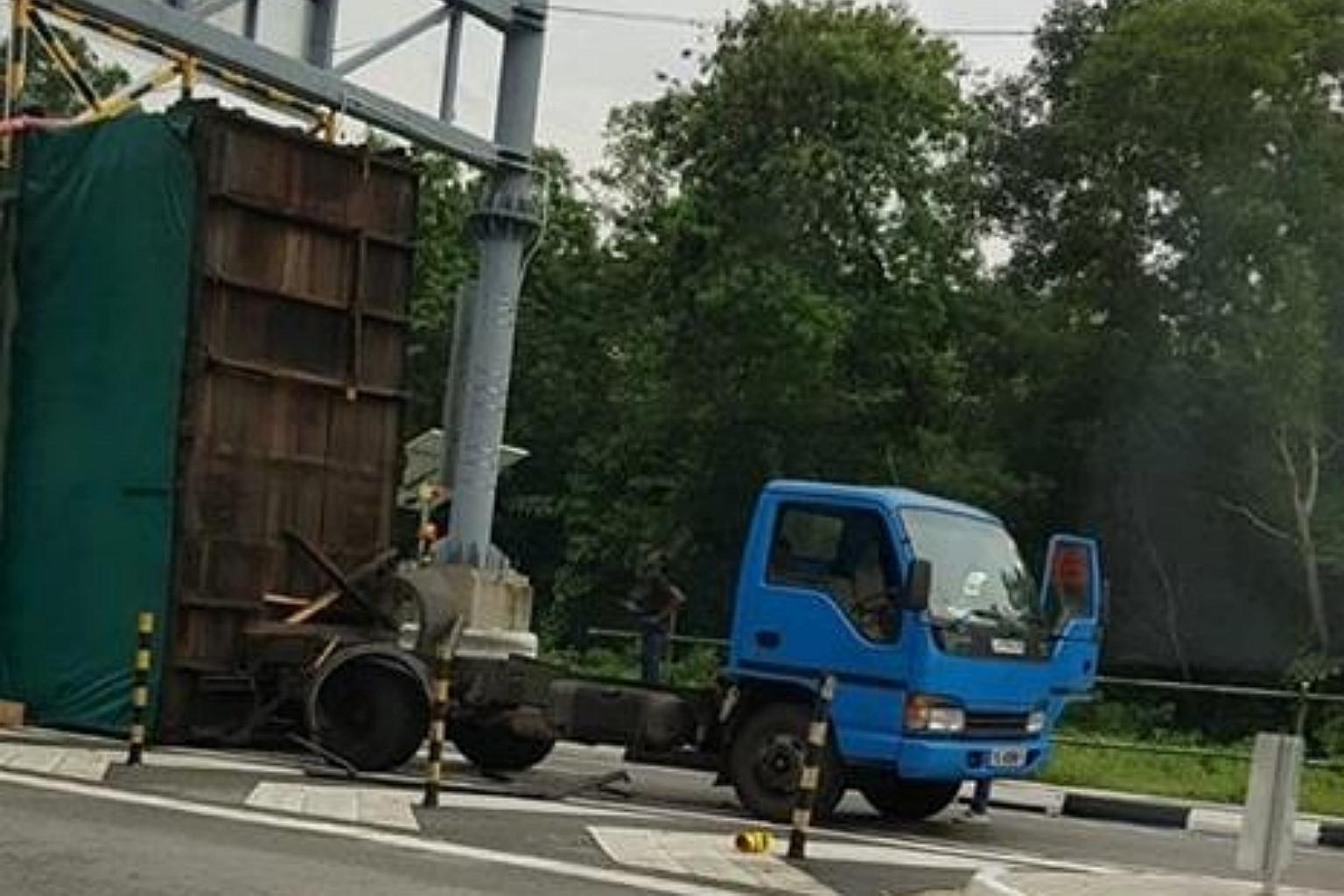 Part of Punggol East road closed for 3 hours after cargo truck hits height limit barrier