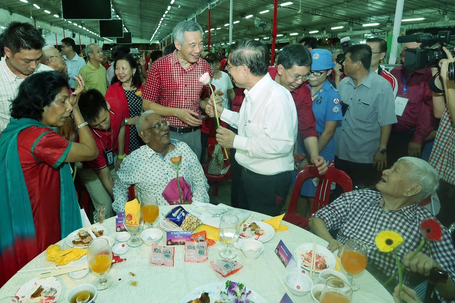 At a Moulmein-Kallang GRC and Whampoa SMC dinner in Farrer Park Field attended by 6,500 residents and community leaders, the pioneers among them were invited to stand by guest-of-honour Prime Minister Lee Hsien Loong.