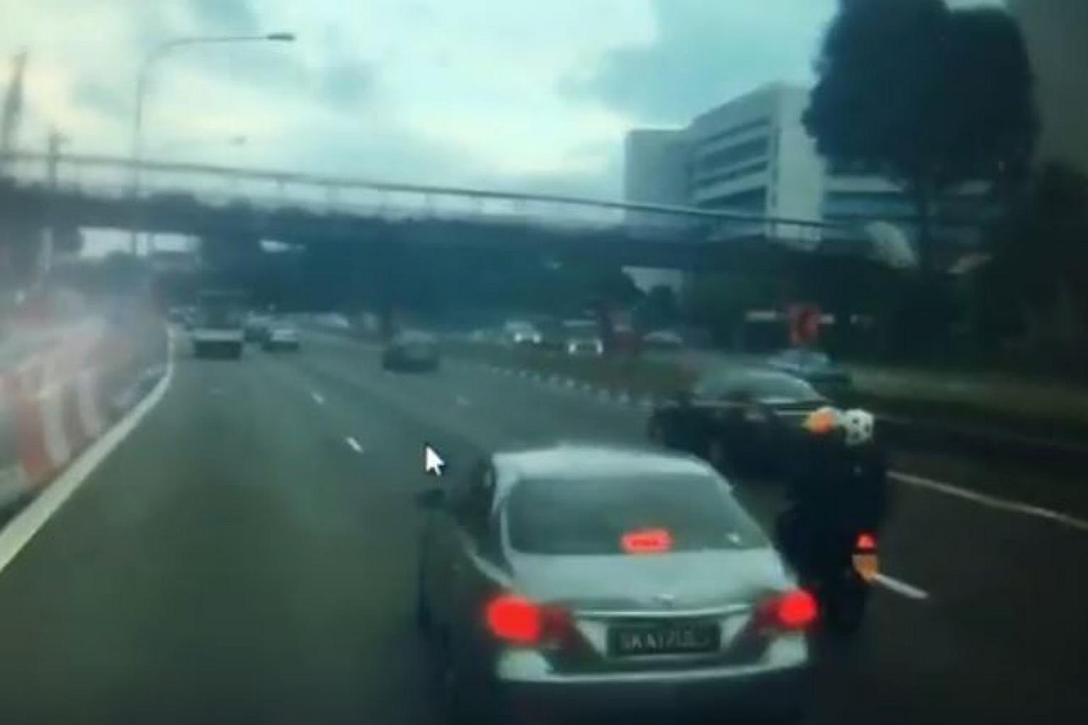 SINGAPORE - The Toyota Camry driver who was filmed knocking down a motorcycle on the Ayer Rajah Expressway (AYE) has been arrested.