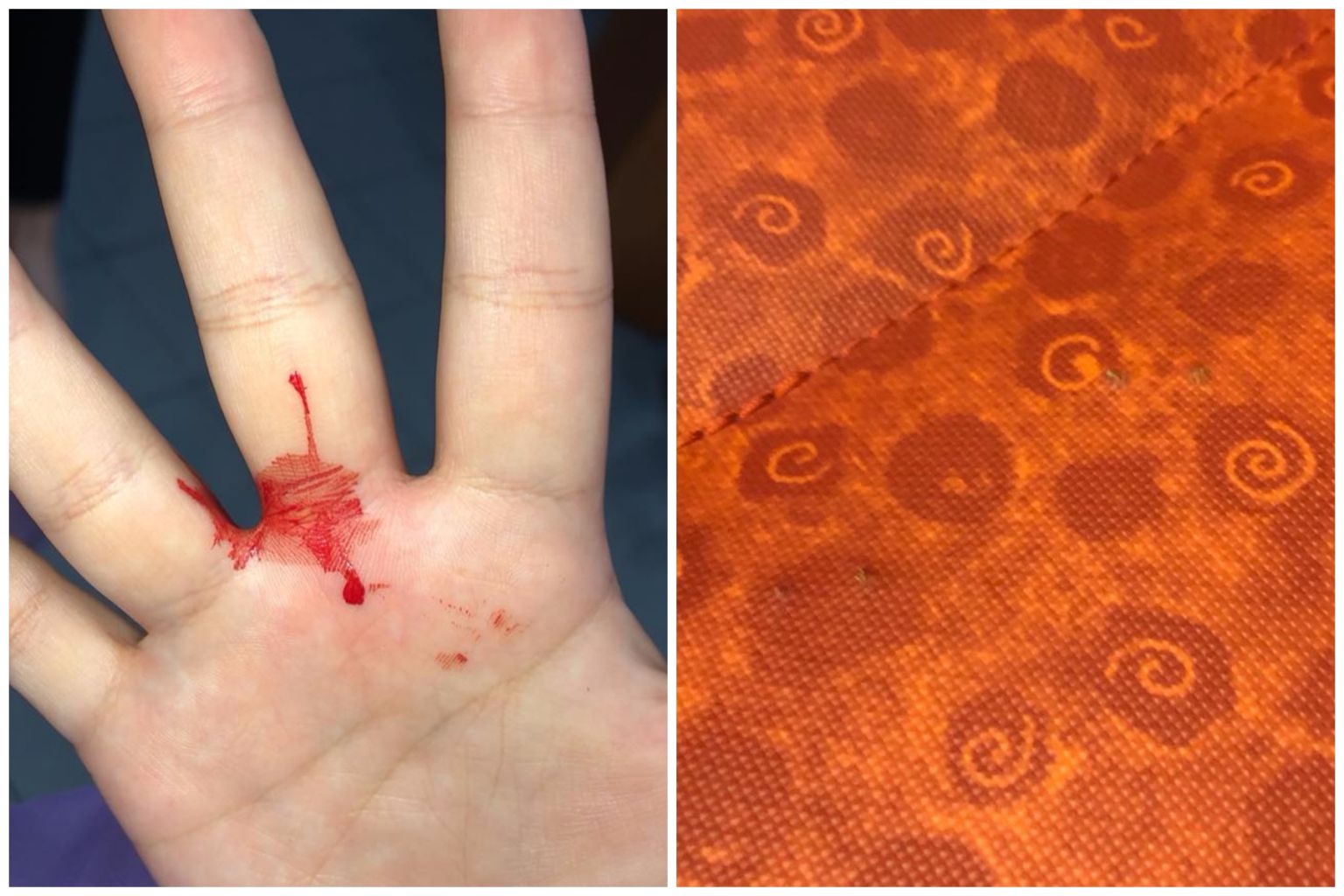 After inspecting the seat, she found four sharp metal edges resembling the ends of staples peeking out from the seat. They were "so deeply embedded that they could not be easily seen if not paying extra close attention", she wrote.