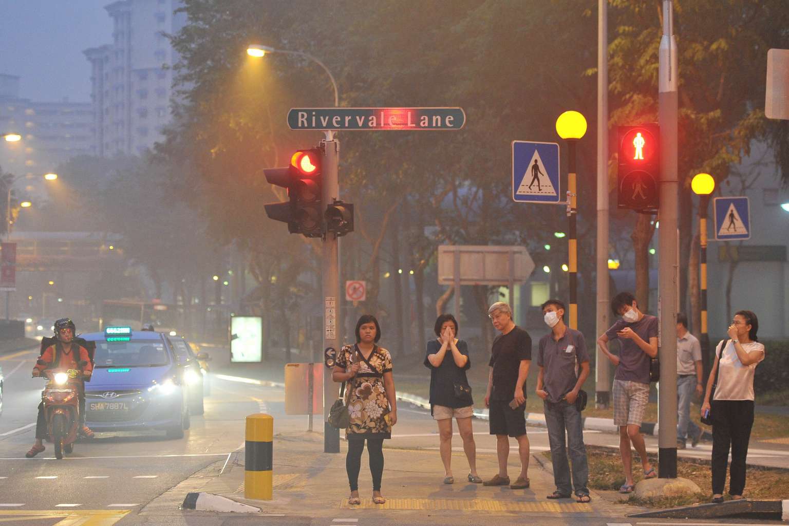 Hazy conditions near Rivervale Plaza on Sept 14, 2015.