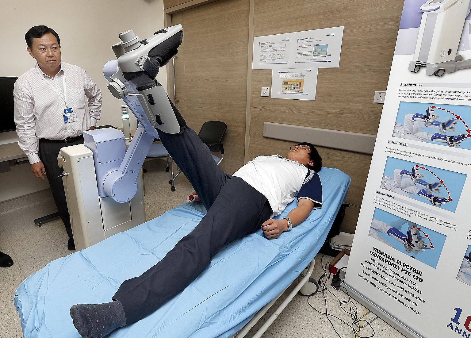 Another machine, the LR2, or Leg Rehabilitation Robot, can be used to provide six exercise routines for the ankle, knee and hip at the same time. It can be used to help patients suffering from orthopaedic and nerve diseases.