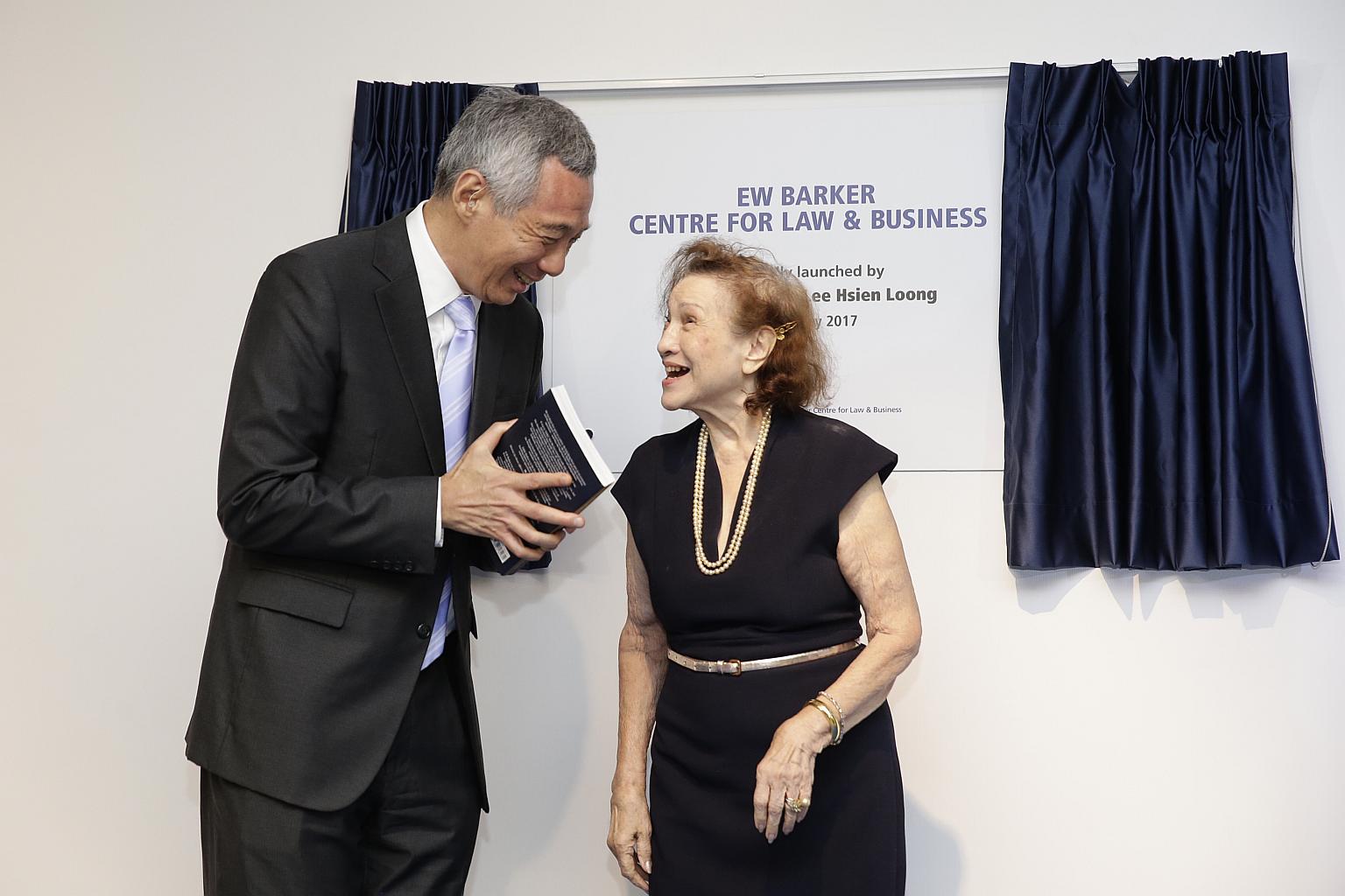 Mr Lee also urged the centre to learn from Mr Barker, saying: "By combining legal know-how with political instincts and a human touch, Mr Barker came up with practical solutions and contributed to creating and building a prosperous Singapore."
