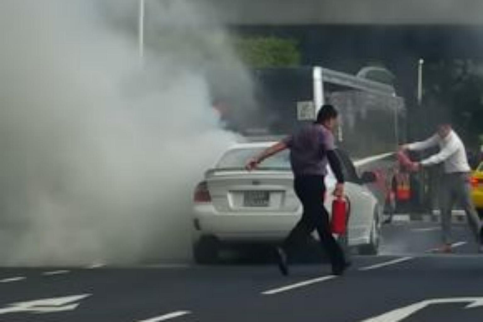 Mr Ong had stopped his taxi and and took out the fire extinguisher which he passed to the car driver who used it to put out the fire.