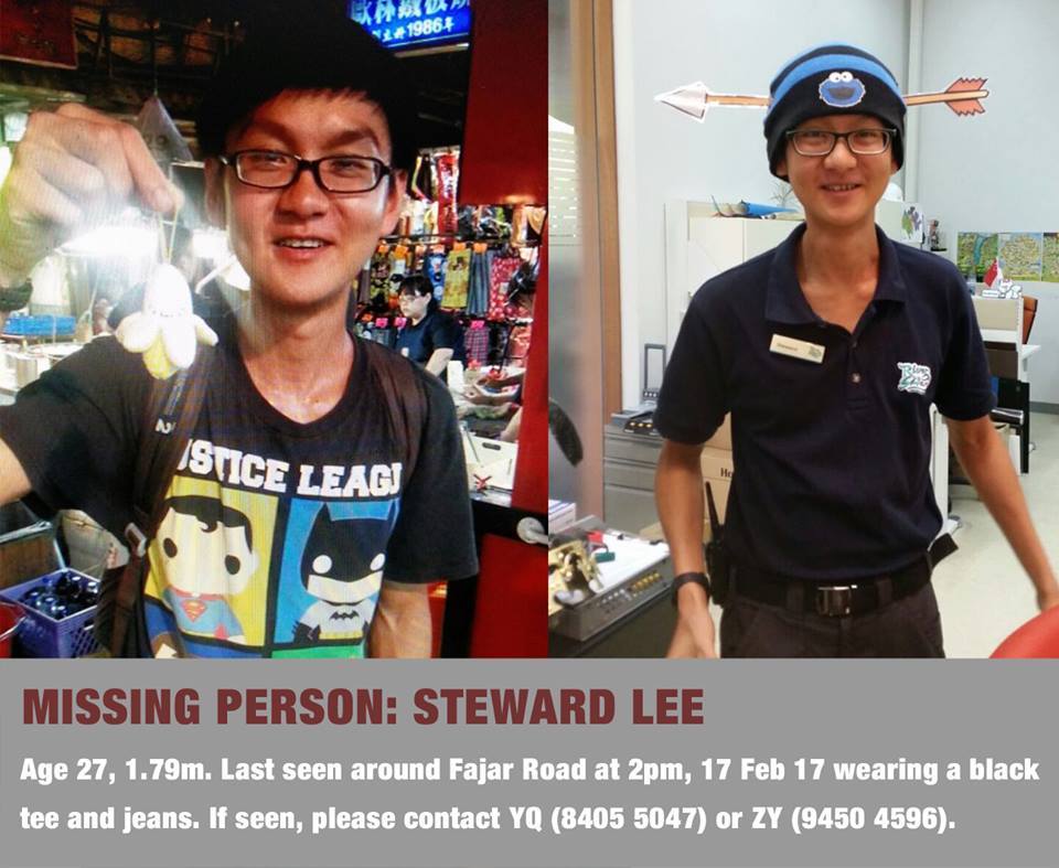 Her family made a police report on Friday night, and the police sent out a missing person alert on its Facebook page on Saturday afternoon appealing for information on Mr Lee.