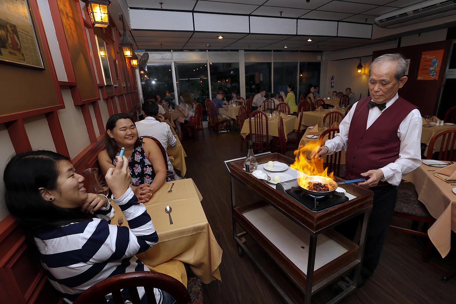 The old-school restaurant was known for its geriatric Hainanese waiters, some of whom could be curmudgeonly. Its former captain, the late Tan Niap Hin, worked until he was 83, stopping only because of ill health. He died in 2013 of pneumonia, months after he left the job.