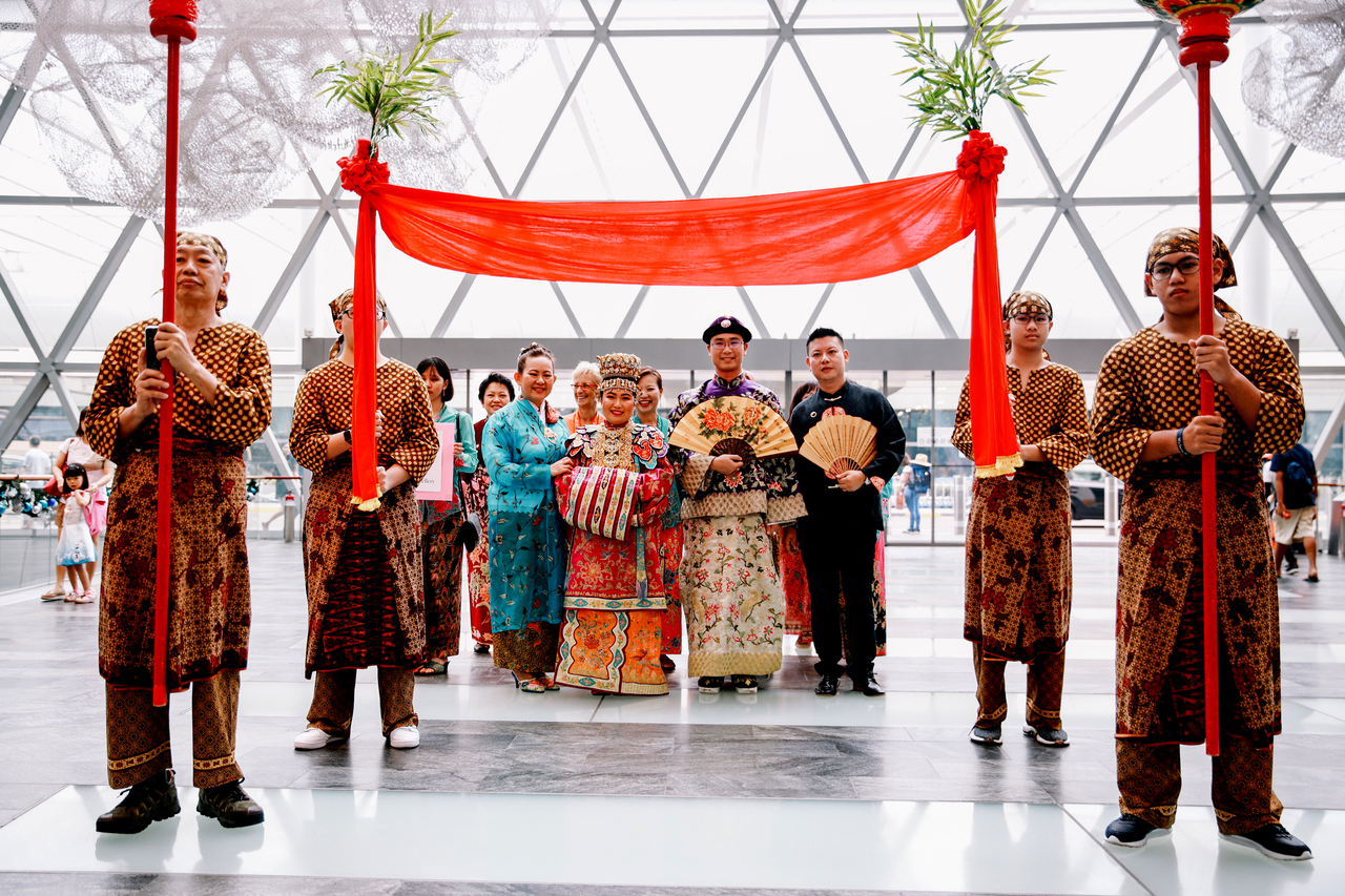 The wedding party entered Jewel via the second storey, made a quick photo stop in front of the viewing deck and then made their way down to the first storey, where they were greeted by family and friends in the Asian Artistry store.