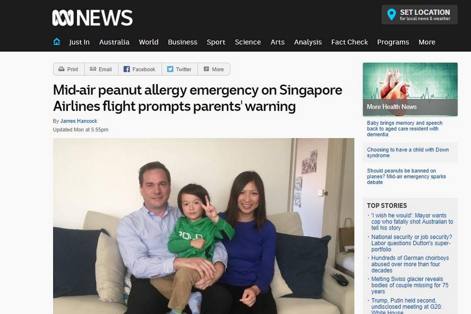 They told the Australian Broadcasting Corporation (ABC) on Monday that Marcus was served a nut-free meal but had an allergic reaction after other passengers opened their packets of peanuts, which were served as a snack.