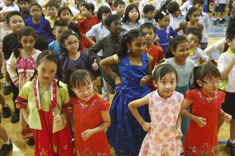 Pupils at Anchor Green Primary School in Sengkang dressed in their ethnic costumes to mark Racial Harmony Day.