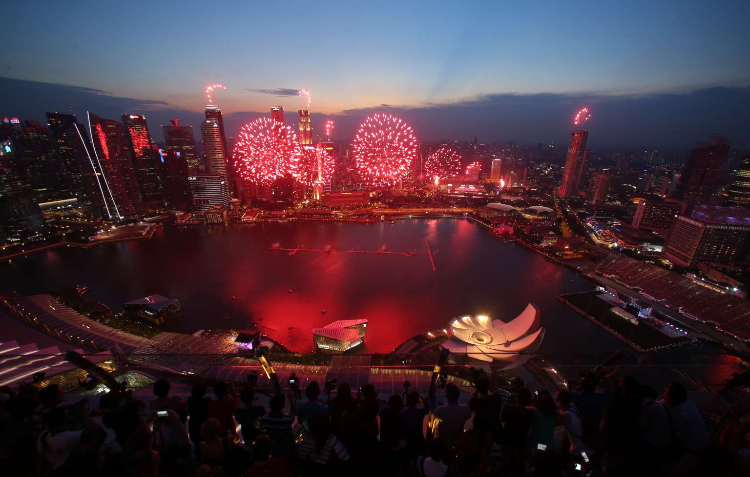Fireworks over the Marina Bay area during the National Day Parade 2015 preview on Aug 1, 2015.