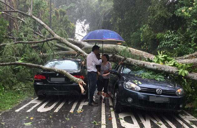 Mr Goh wrote: "I had to walk around the fallen tree to go home in another car waiting on the other side of the tree. I hope the drivers of the three cars are not badly traumatized."
