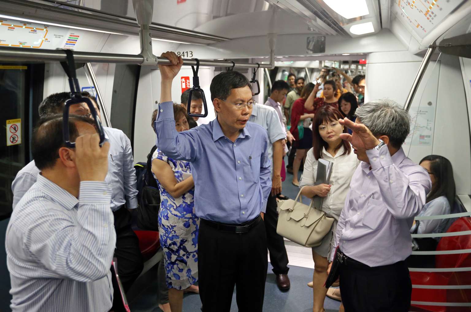 Mr Lui Tuck Yew riding one of the new trains on the Circle Line on Aug 3, 2015.