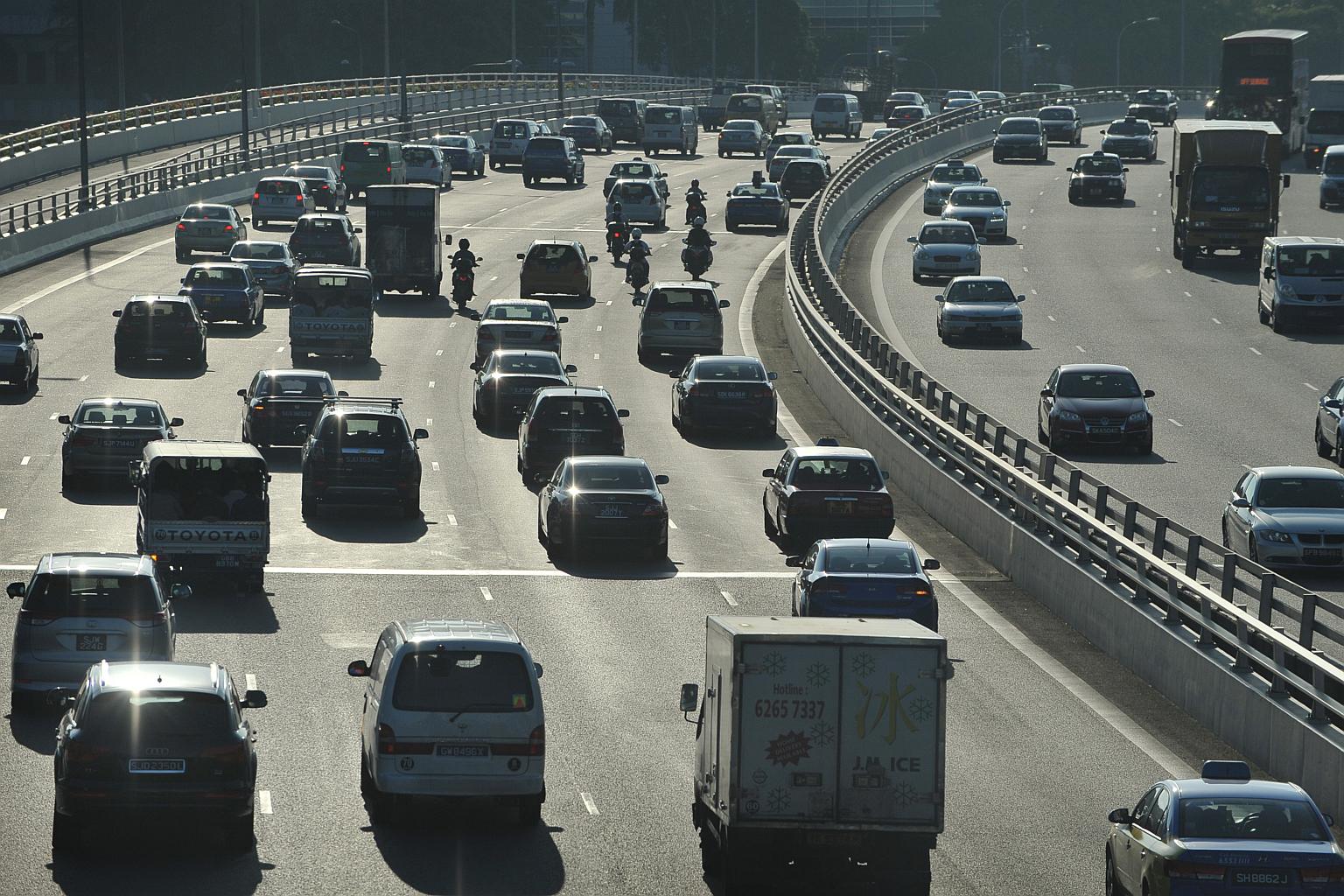 Morning rush-hour traffic on the Pan-Island Expressway.