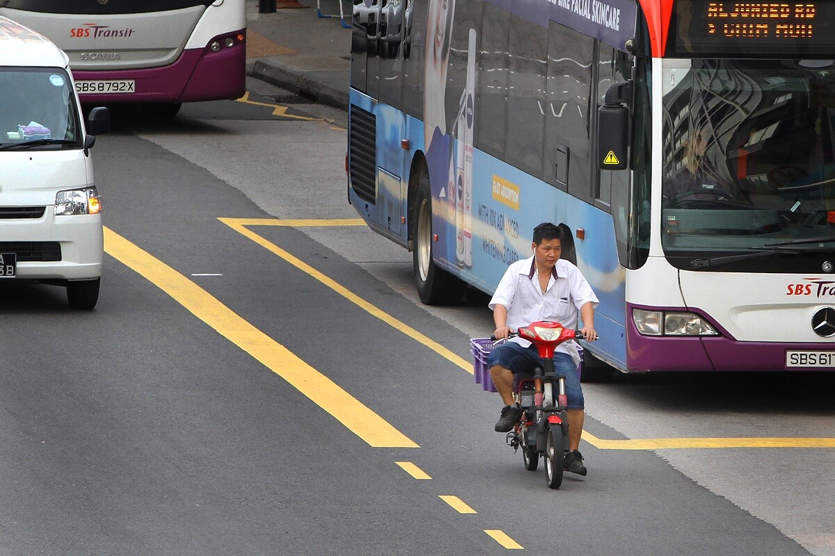 Land Transport Authority (LTA) regulations, introduced last December, state that every e-biker must ride as close as possible to the left side of the road.