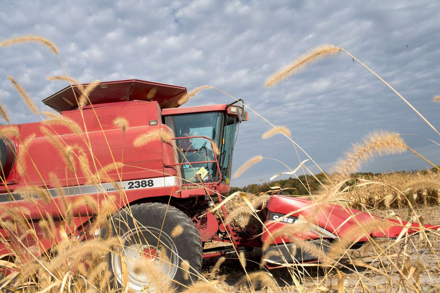 Harvesting corn near Burlington, Iowa. Biofuels are derived from plant sources such as palm, sugar cane, corn and algae.