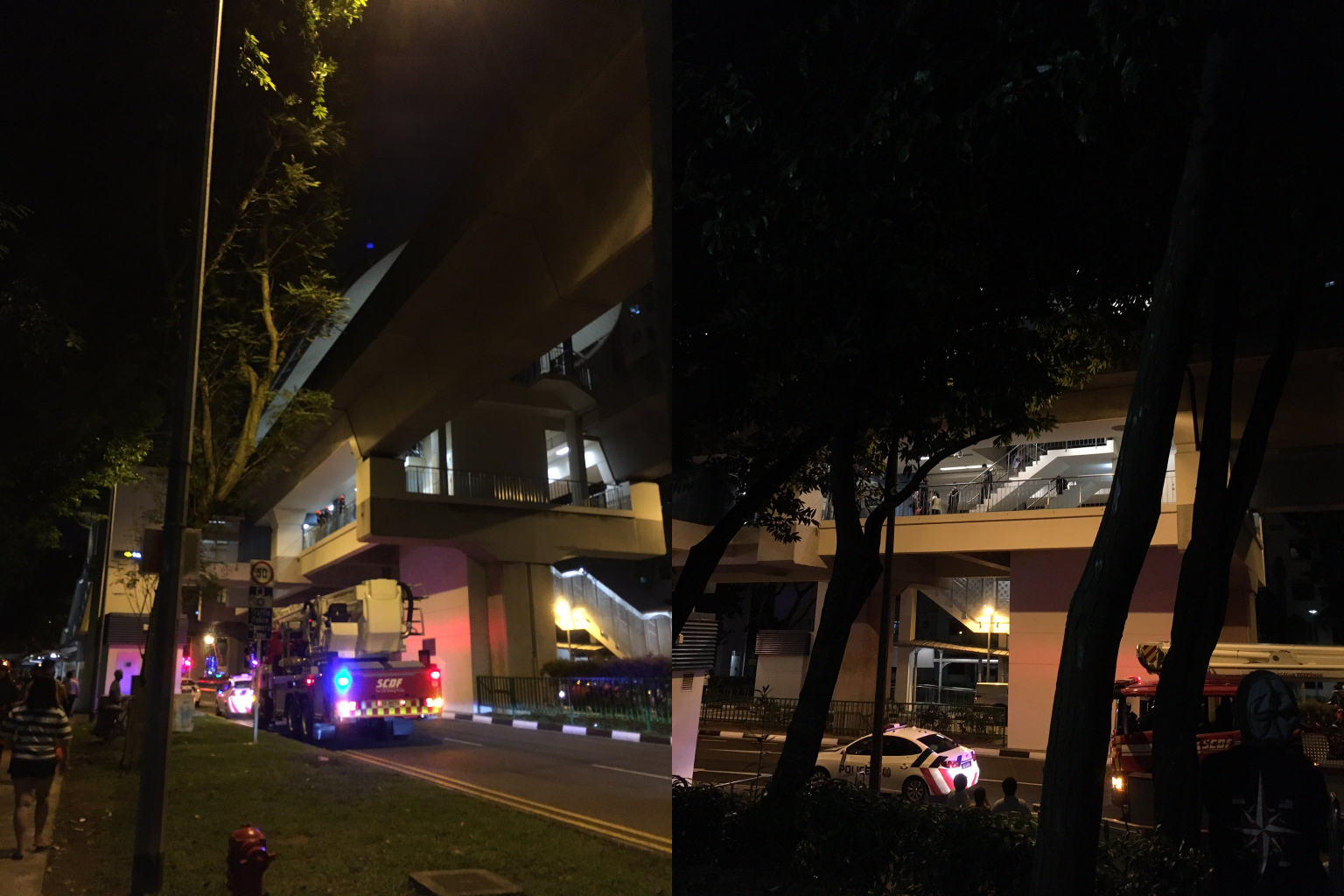 Members of the SCDF and the police at Bakau LRT at 8.25pm on Feb 10, 2017.