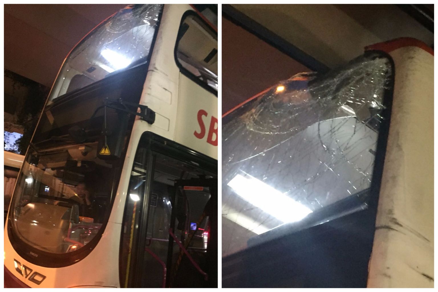 The impact shattered the windshield of the SBS Transit bus' upper deck.