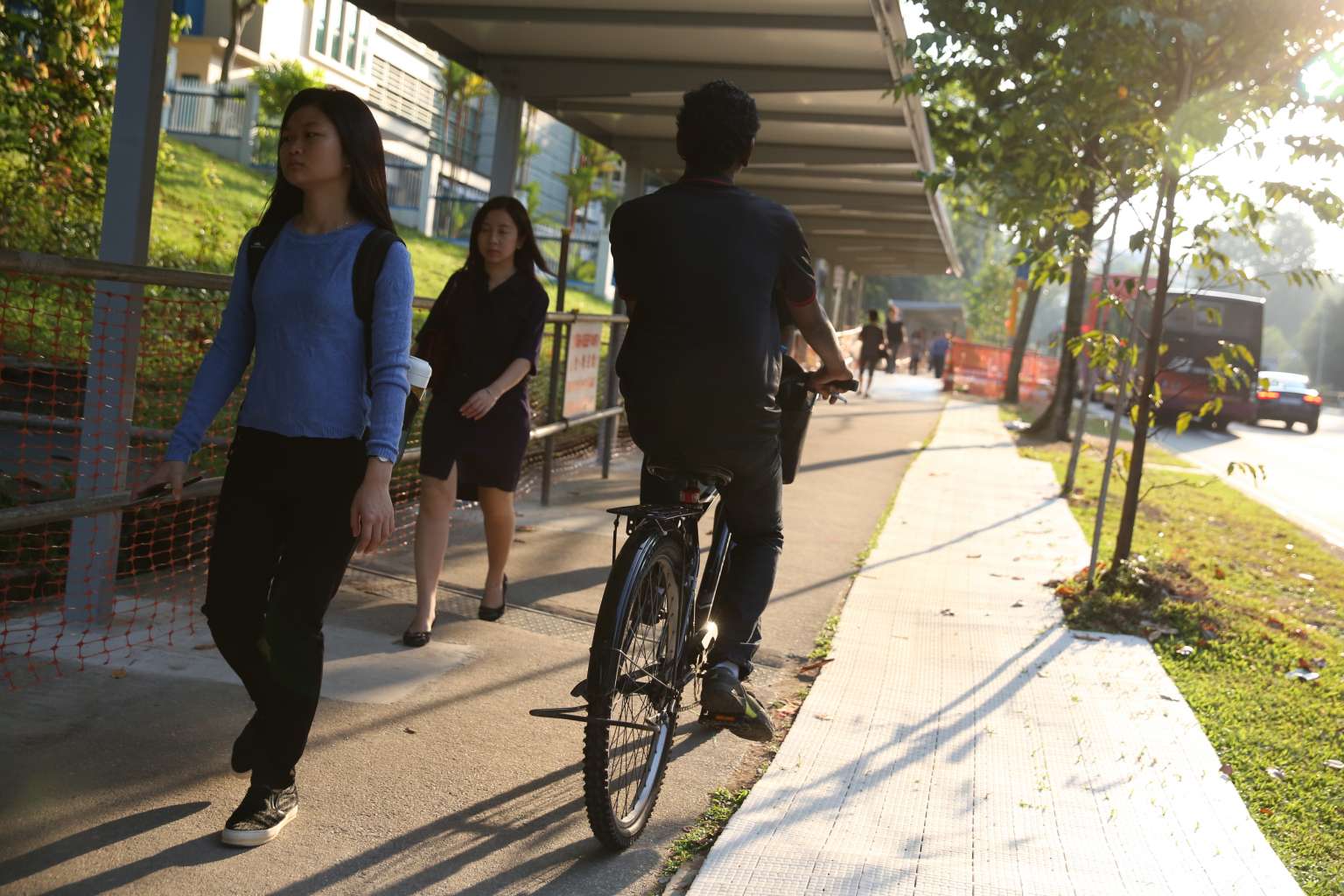 Cyclists on pedestrian paths at Ang Mo Kio, on March 17, 2016.