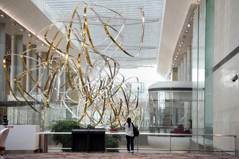 Art pieces adorn the new Changi Airport Terminal 4, including this aluminum installation called Petalclouds.