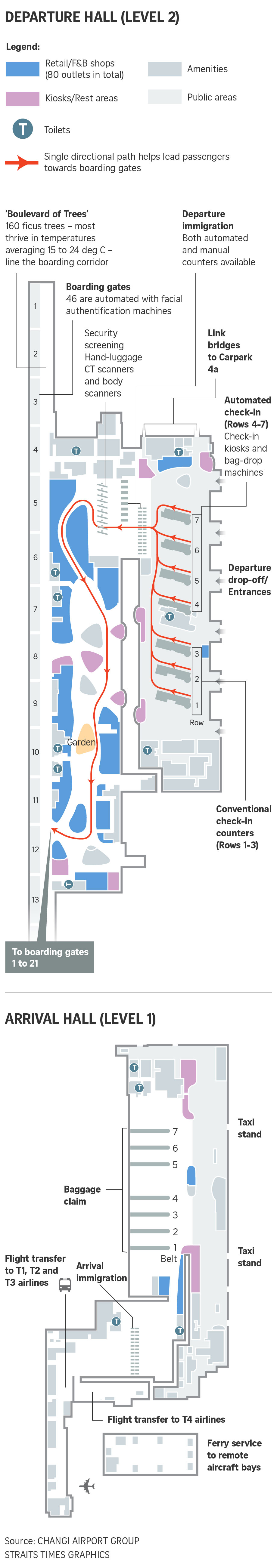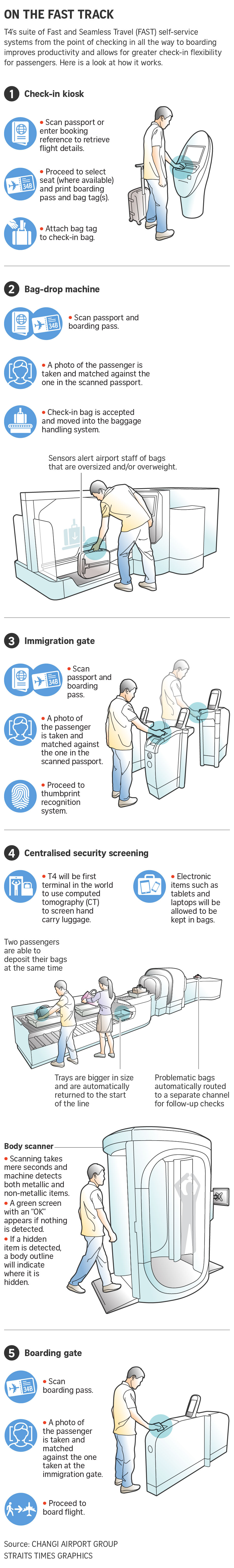 Said Ms Poh Li San, vice-president of Changi Aiport Group's T4 programme management office: "T4 was conceived with the vision to rethink travel, push boundaries and break new ground. Through innovative concepts of operation and terminal design, we sought to address our capacity needs as well as improve efficiency and manpower productivity."