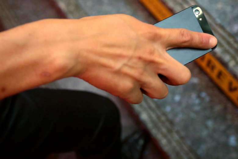A person demonstrating how upskirt videos or photos were taken.