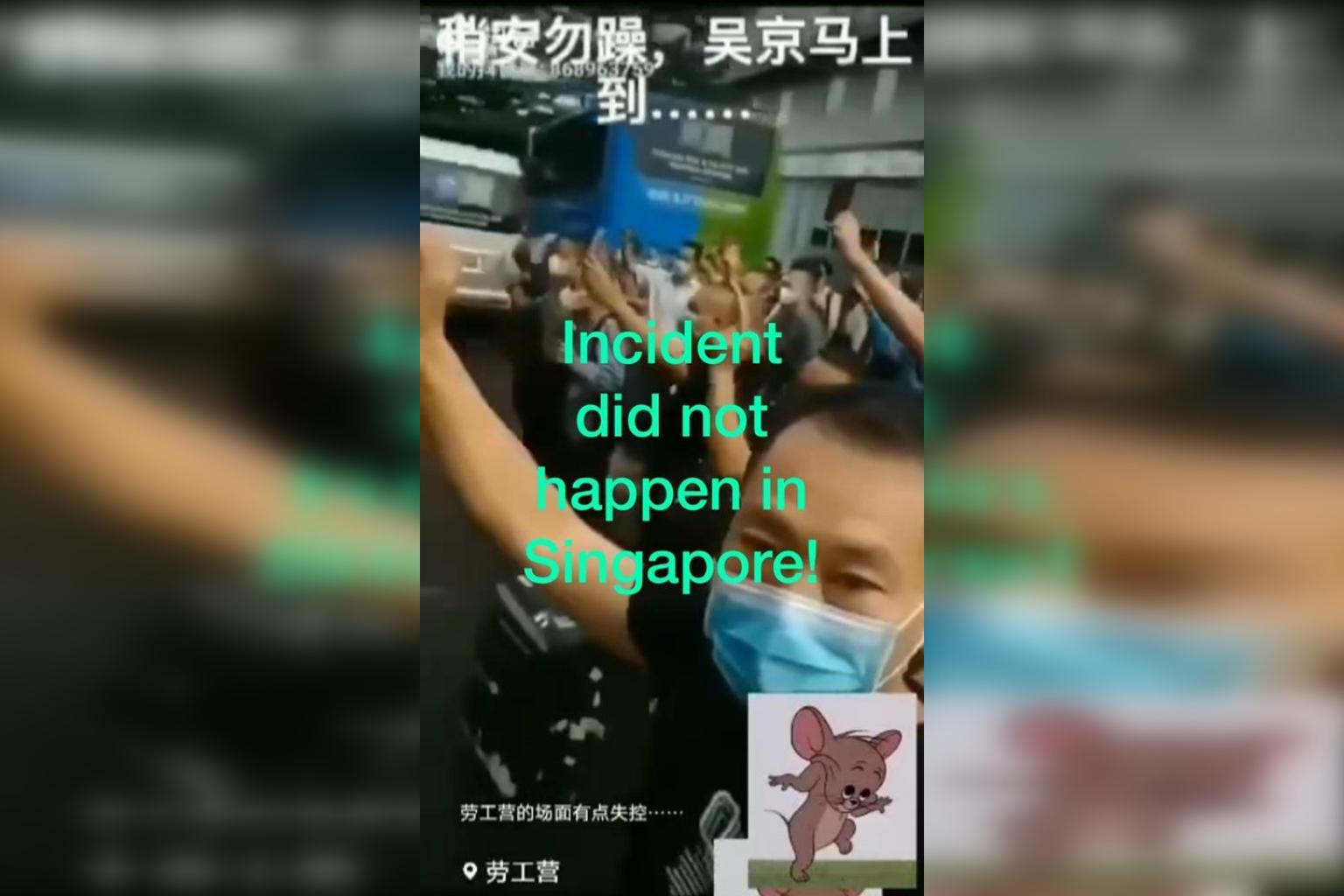 SINGAPORE - The police clarified on Thursday (April 9) that a video being circulated of foreign workers demanding to return home was not taken in Singapore.