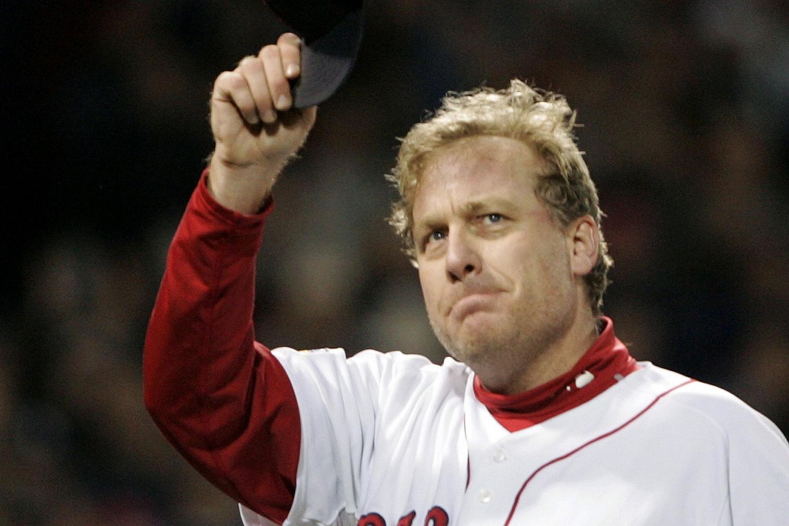 Boston Red Sox pitcher Curt Schilling tips his cap to the fans as he is taken out of a game during Game 2 of Major League Baseball's World Series in Boston, on Oct 25, 2007.