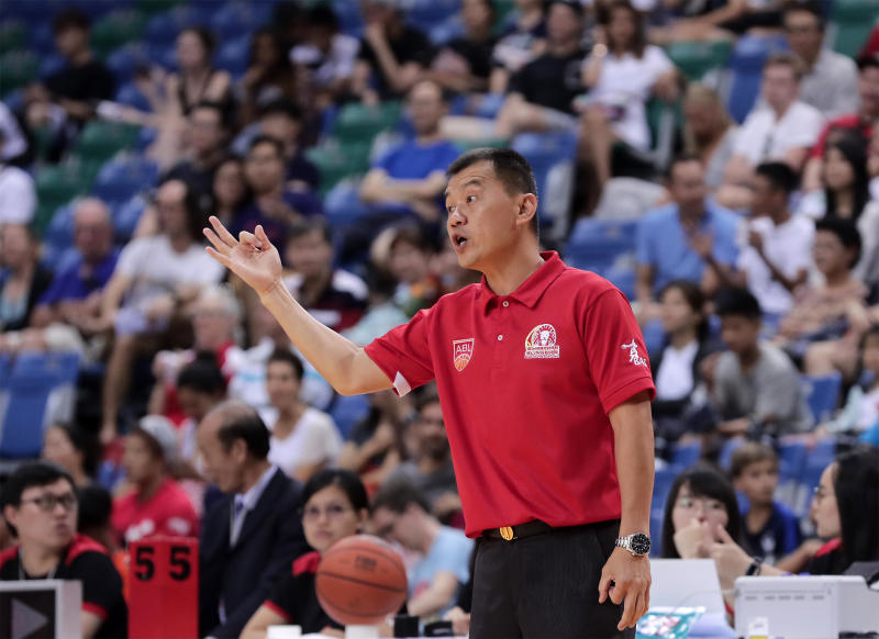 Singapore Slingers coach Neo Beng Siang giving his team instructions in their final regular-season game on March 24, 2019.