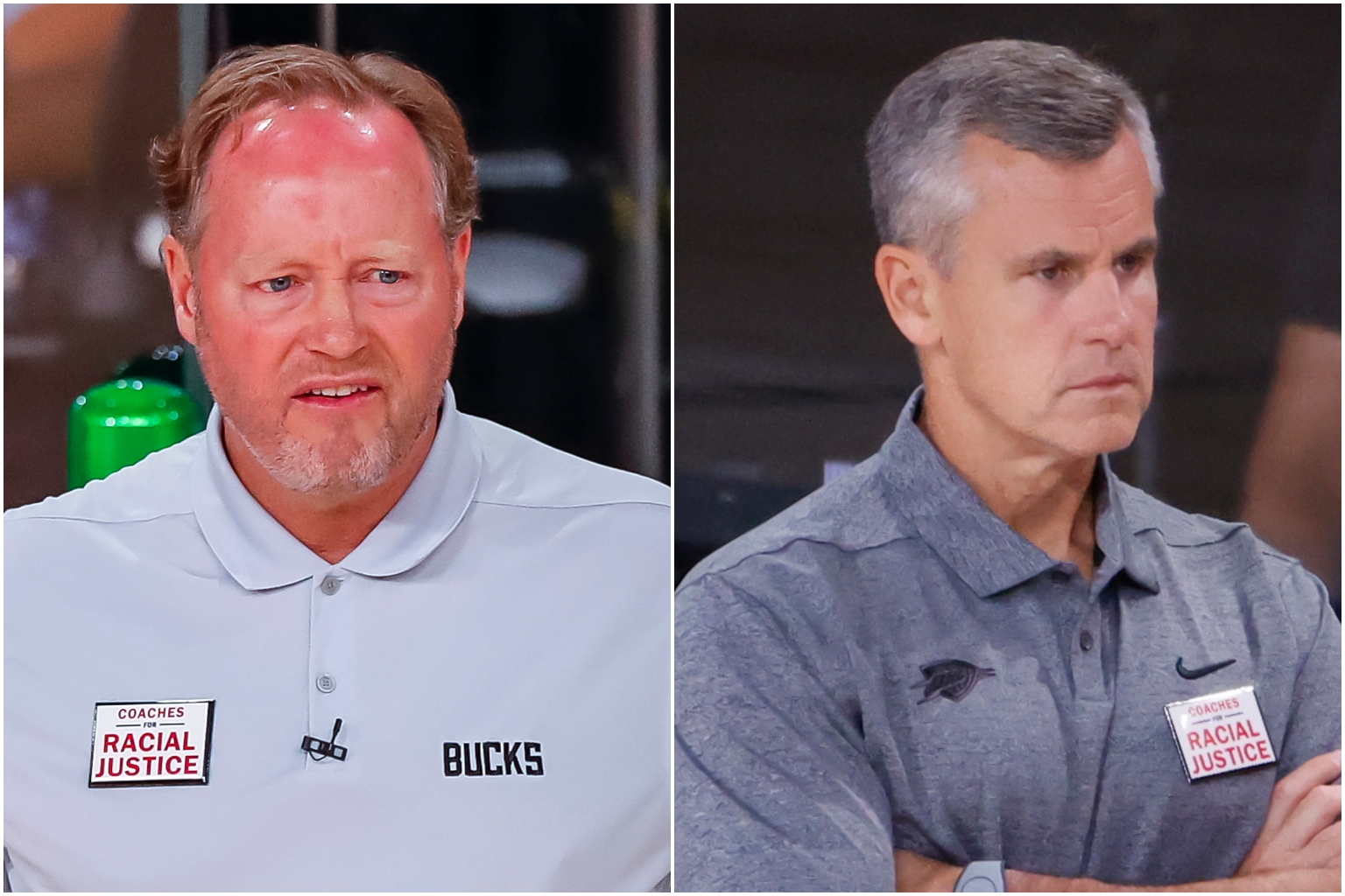 Mike Budenholzer (left) and Billy Donovan shared the award after voting.