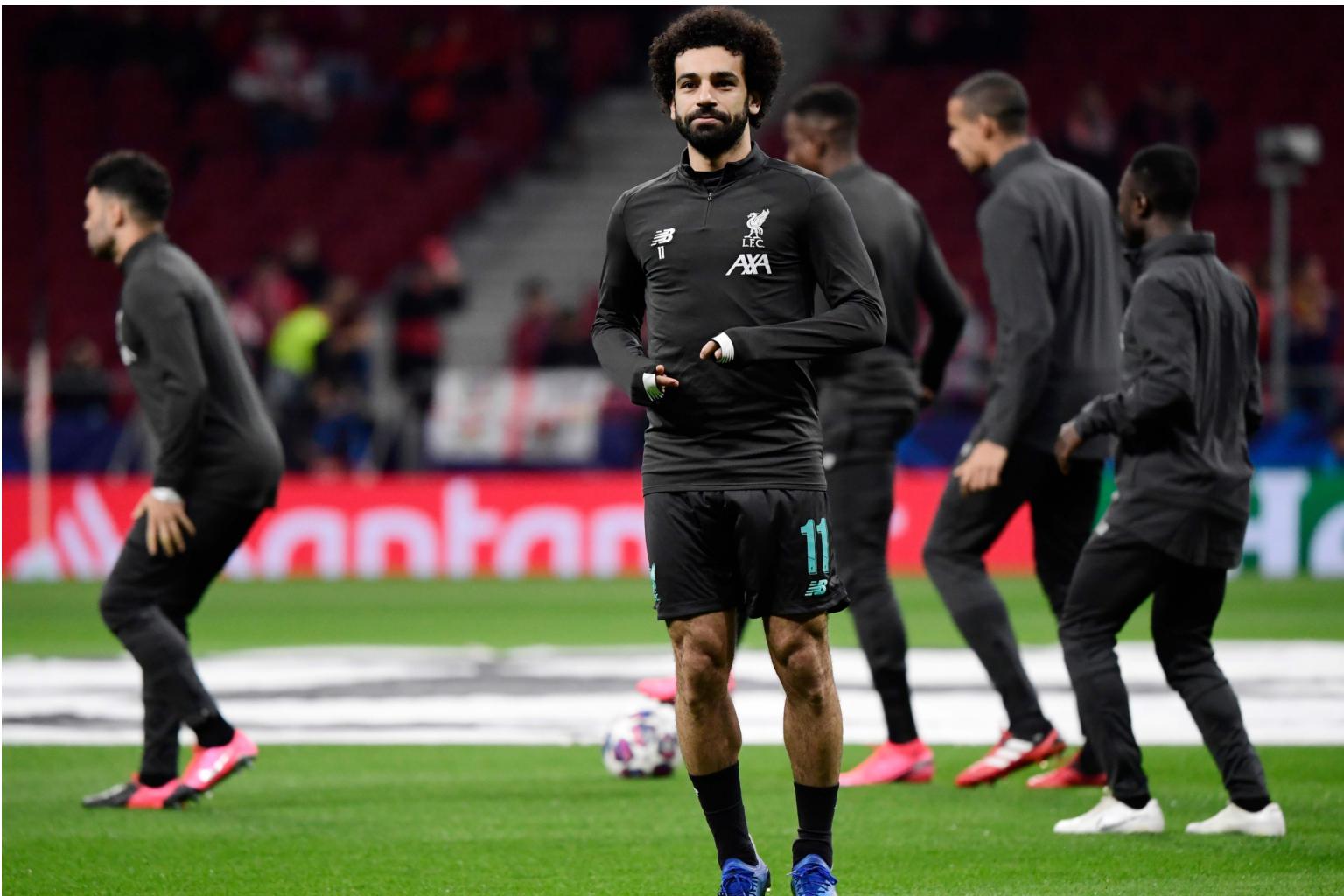 Mohamed Salah warms up before the UEFA Champions League match between Club Atletico de Madrid and Liverpool FC at the Wanda Metropolitano stadium in Madrid, on Feb 18, 2020.