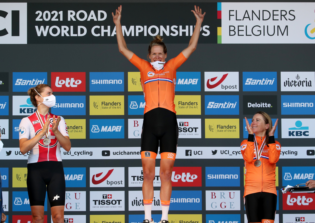 The action continues Tuesday with the women's and men's junior time-trial events, also ending in Bruges.